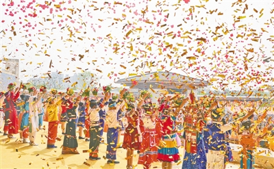 社會(huì)各界代表及近百家新聞媒體5000余人在現(xiàn)場(chǎng)參加大典。圖片由本報(bào)記者馬健徐宗福拍攝。