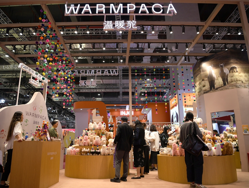 這是11月5日在上海拍攝的第七屆進博會秘魯“溫暖駝”展臺。今年,秘魯品牌“溫暖駝”連續第七年亮相進博會,受到更多中國消費者的喜愛。新華社記者 金馬夢妮 攝