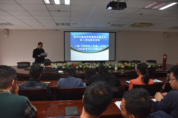 11月30日下午,根據(jù)《鄭州市人民政府國有資產(chǎn)監(jiān)督管理委員會關(guān)于印發(fā)鄭州市國資系統(tǒng)2018年“12·4”國家憲法日集中法治宣傳活動方案的通知》要求,為弘揚憲法精神,建設法治鄭州,集團公司在25樓會議室開展了《建設工程施工合同糾紛疑難實務問題》解讀培訓活動。本次教育培訓活動為視頻培訓,培訓課件主講人為袁華之律師,集團公司80多名員工參加本次活動。